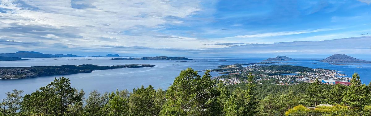 Utsikt frå Brandsøyåsen. En vedunderleg utsikt over skjærgården til Florø i Kinn kommune. På biletet i nede i "Galleriet" ser du framme til venstre Stavøya. Bak til venstre ser vi litt av Svanøya, "Sunnfjords perle" og bak Svanøya ser vi Askvoll og Atløy. Lengst bak, til høgre om Askvoll, ser vi Værlandet og Alden, "Den norske hest", som er 481 moh. Framfor Alden, litt til høgre, ser vi Askrova, "Den grøne smaragd". Florø ligg framme til høgre og bak Florø ser vi Reksta og Kinn. Lengst til høgre ligg Skorpa.