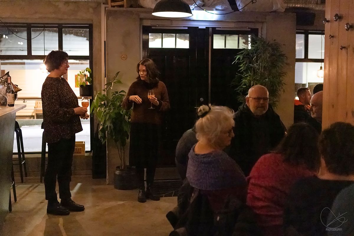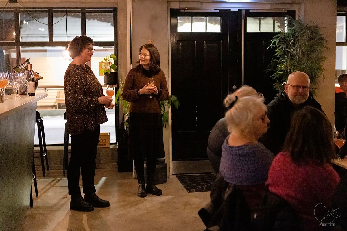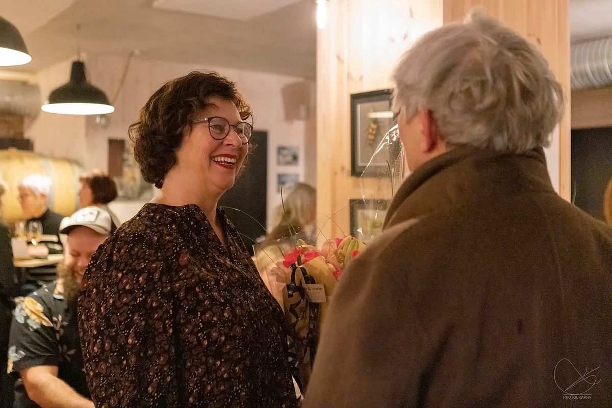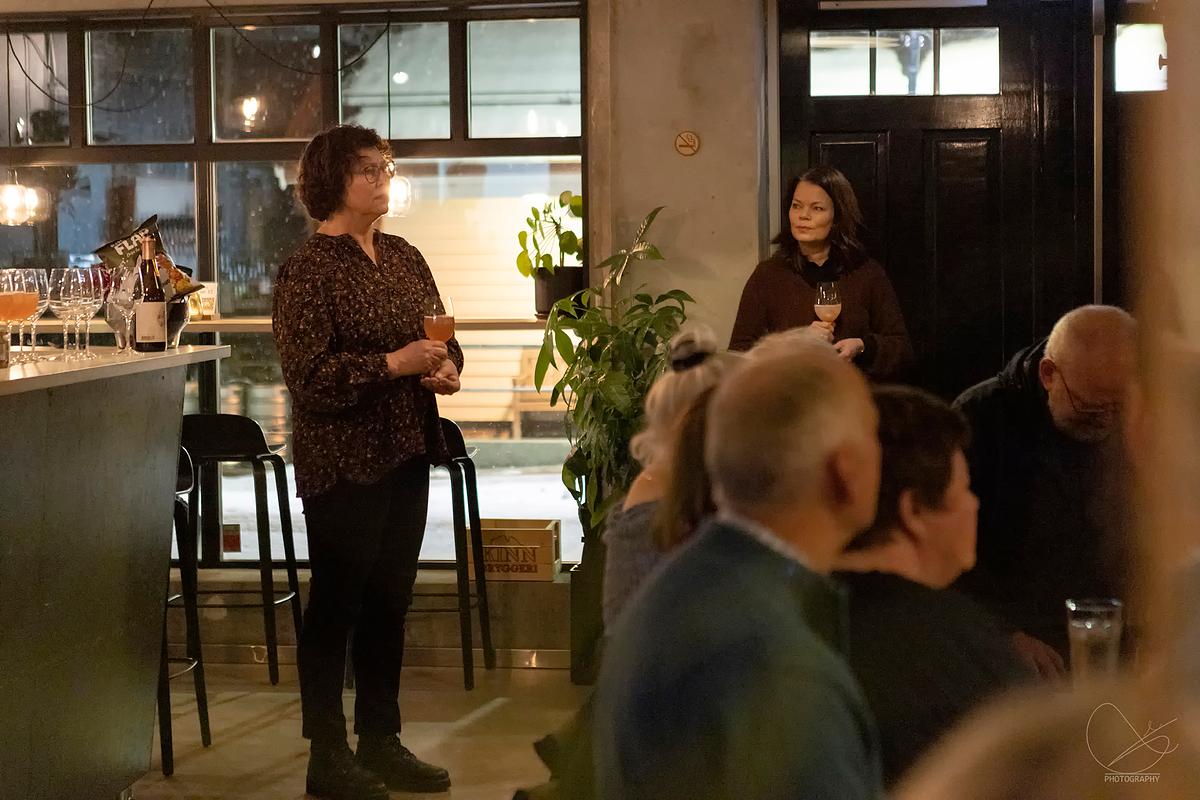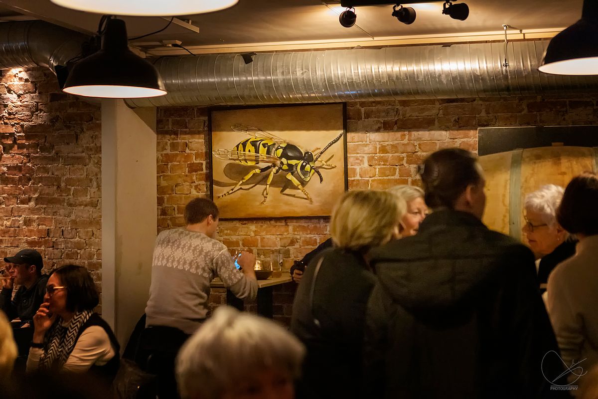 I går var det vernissasje på Vesle Kinn i Strandgata, Florø. Det er Trud Nybø frå Galleri Trud som viser opp sine flotte verk. Det var mange som hadde tatt turen torsdagskveld, og stemninga var veldig god.