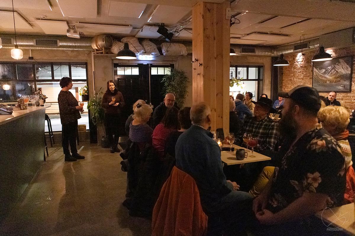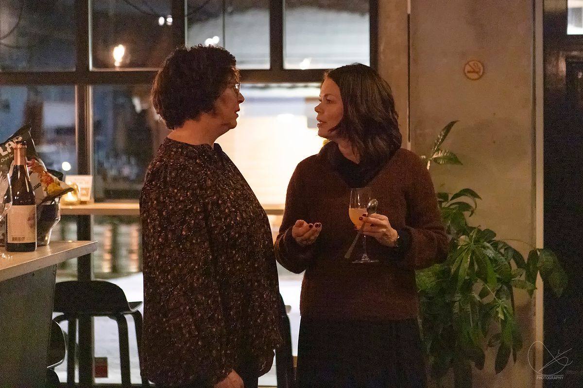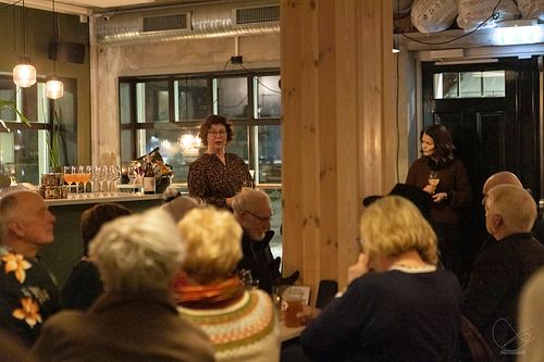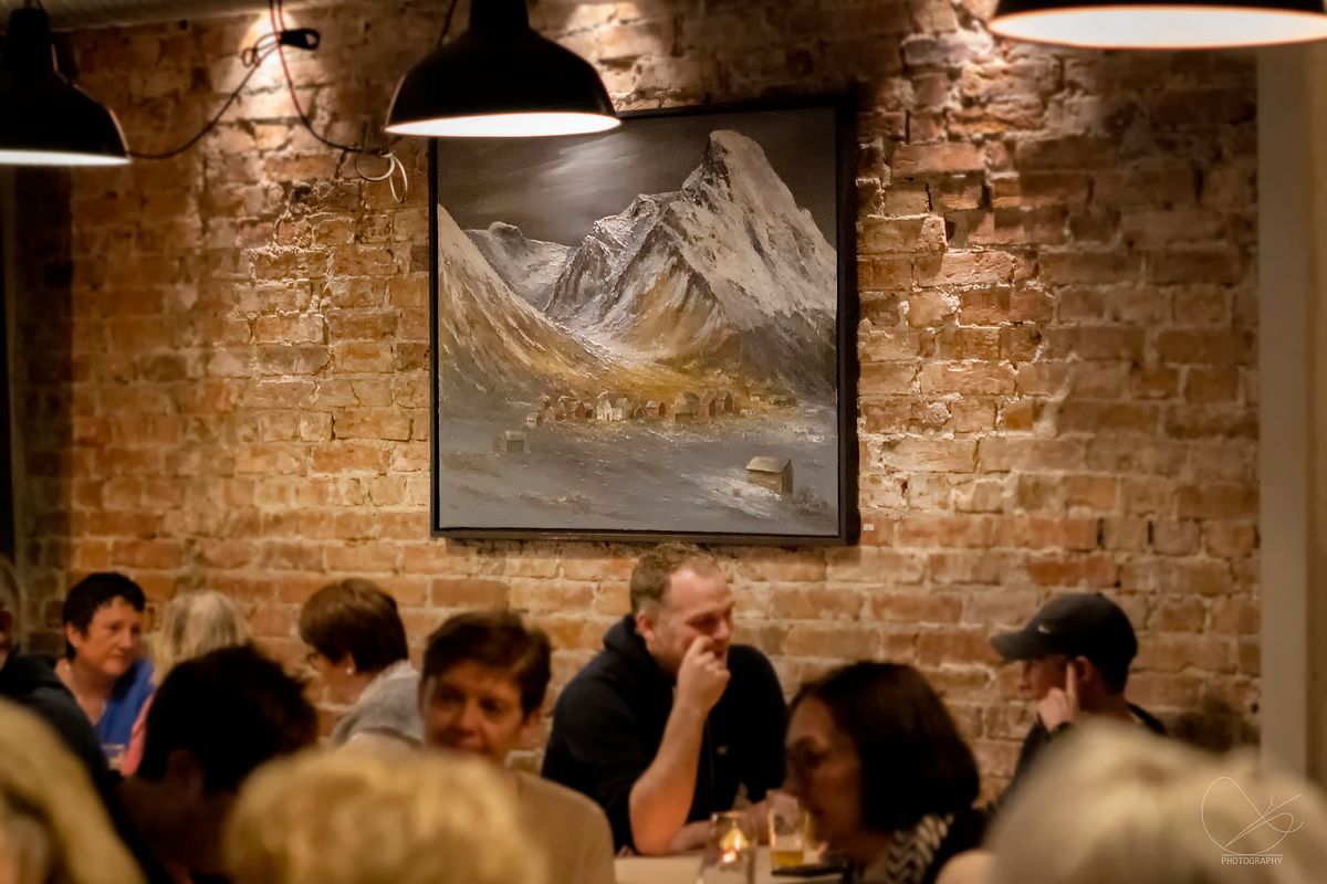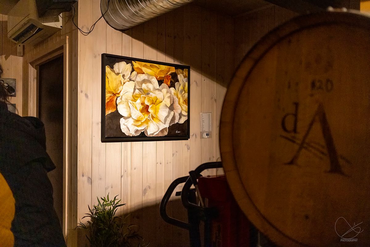 I går var det vernissasje på Vesle Kinn i Strandgata, Florø. Det er Trud Nybø frå Galleri Trud som viser opp sine flotte verk. Det var mange som hadde tatt turen torsdagskveld, og stemninga var veldig god.