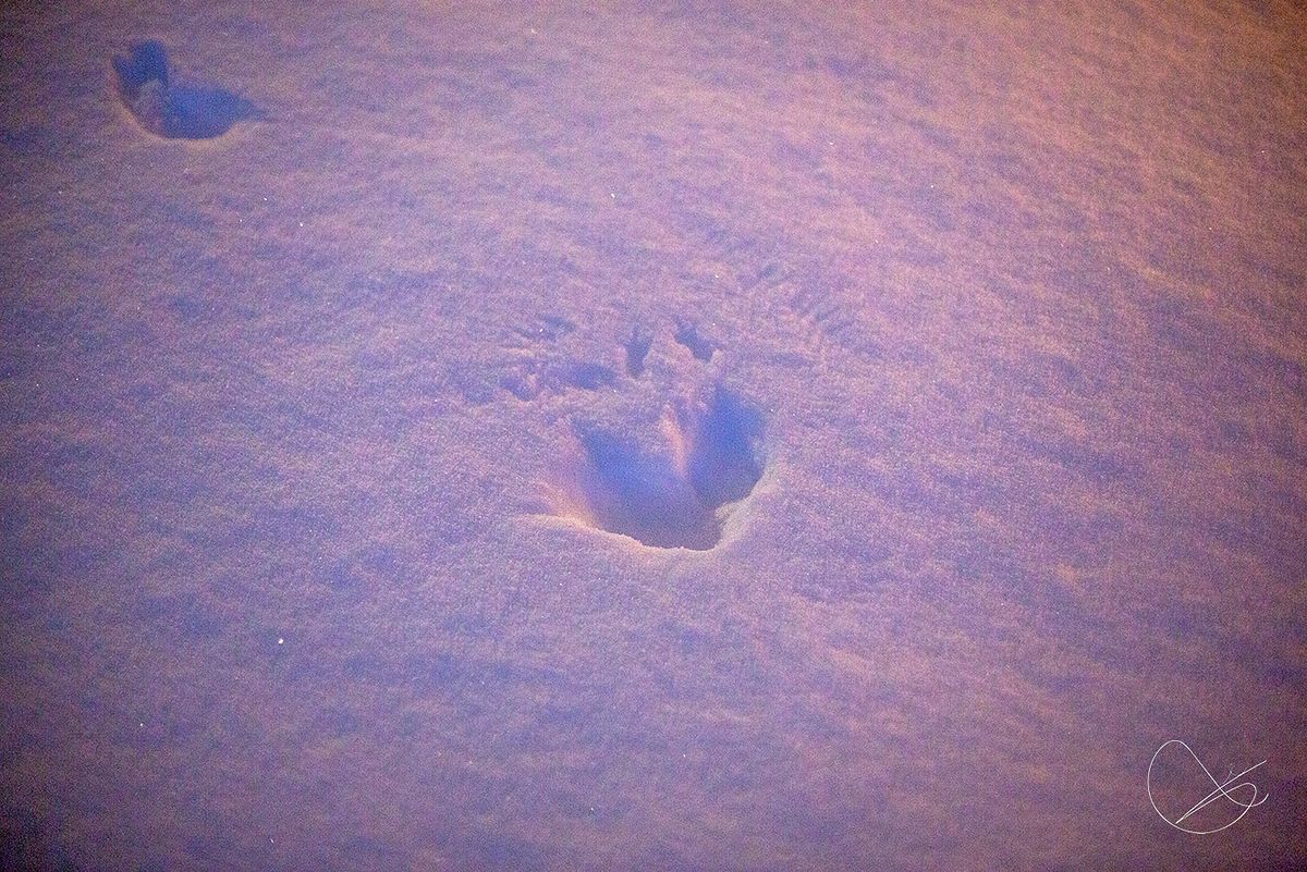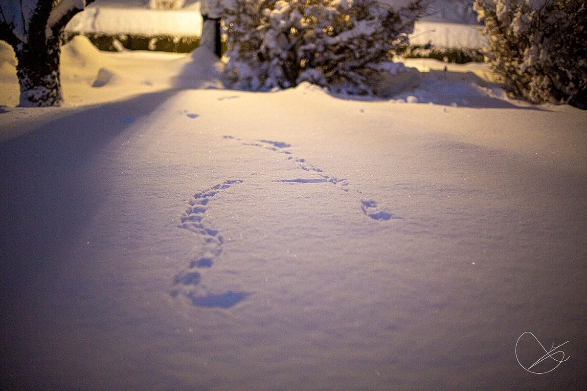 Såg ein trast som sikkert blei veldig overrasket av å få "snøbade" når den skulle lande på snøen. Det blei litt kule avtrykk etter den i snøen.